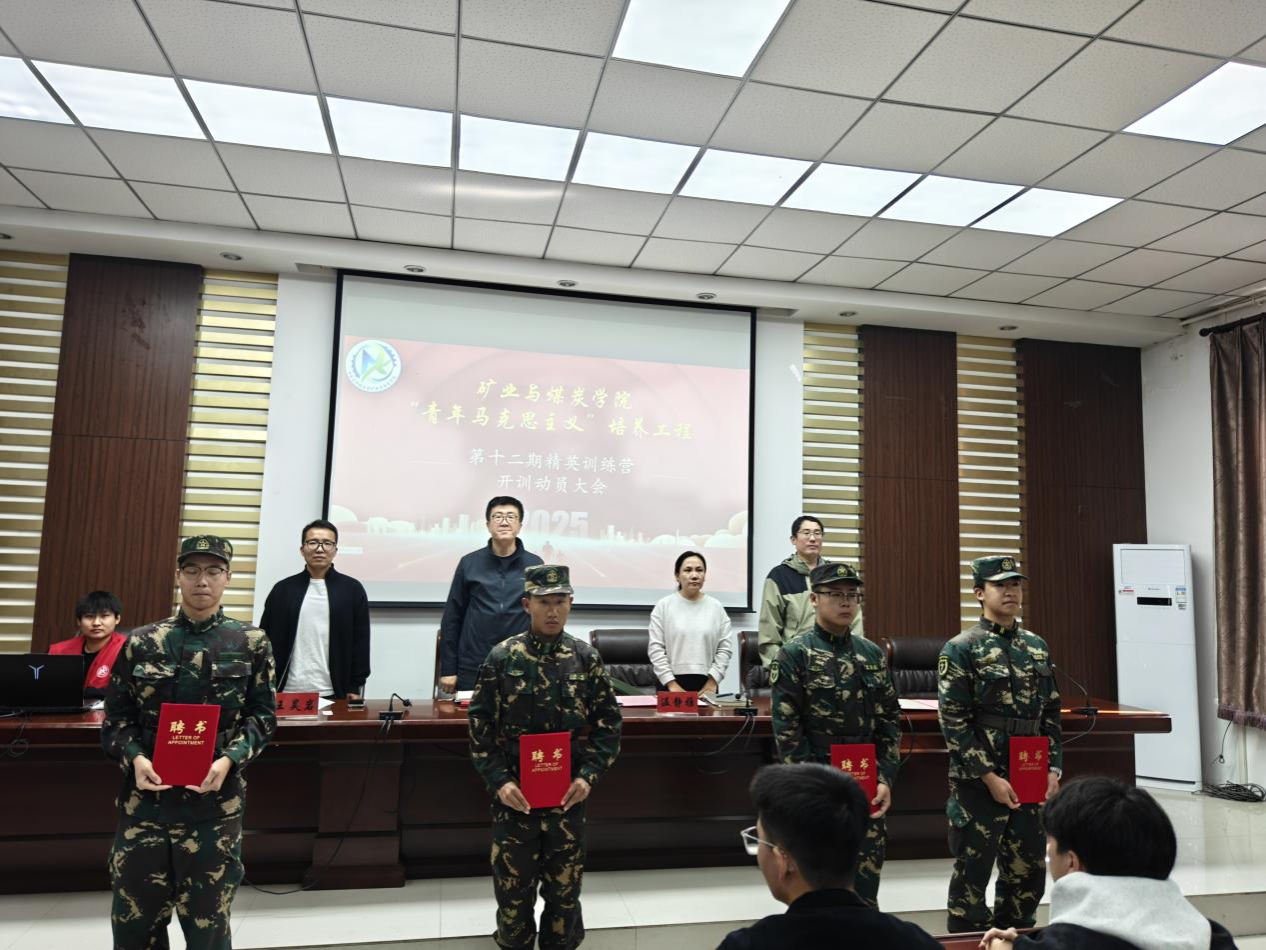 青春号角嘹亮,奋斗征程启航。近日,矿业与煤炭学院“青年马克思主义者”培养工程暨第十一期精英训练营结训表彰大会和第十二期精英训练营开训动员大会顺利在实训楼二楼会议室举行。出席本次大会的领导和老师有矿业与煤炭学院党委副书记、副院长温静雅老师、矿业与煤炭学院学生办主任胡显峰老师、矿业与煤炭学院团委书记郭灵飞老师、矿业与煤炭学院辅导员王昊岩老师,共同见证荣耀时刻,开启崭新成长旅程。