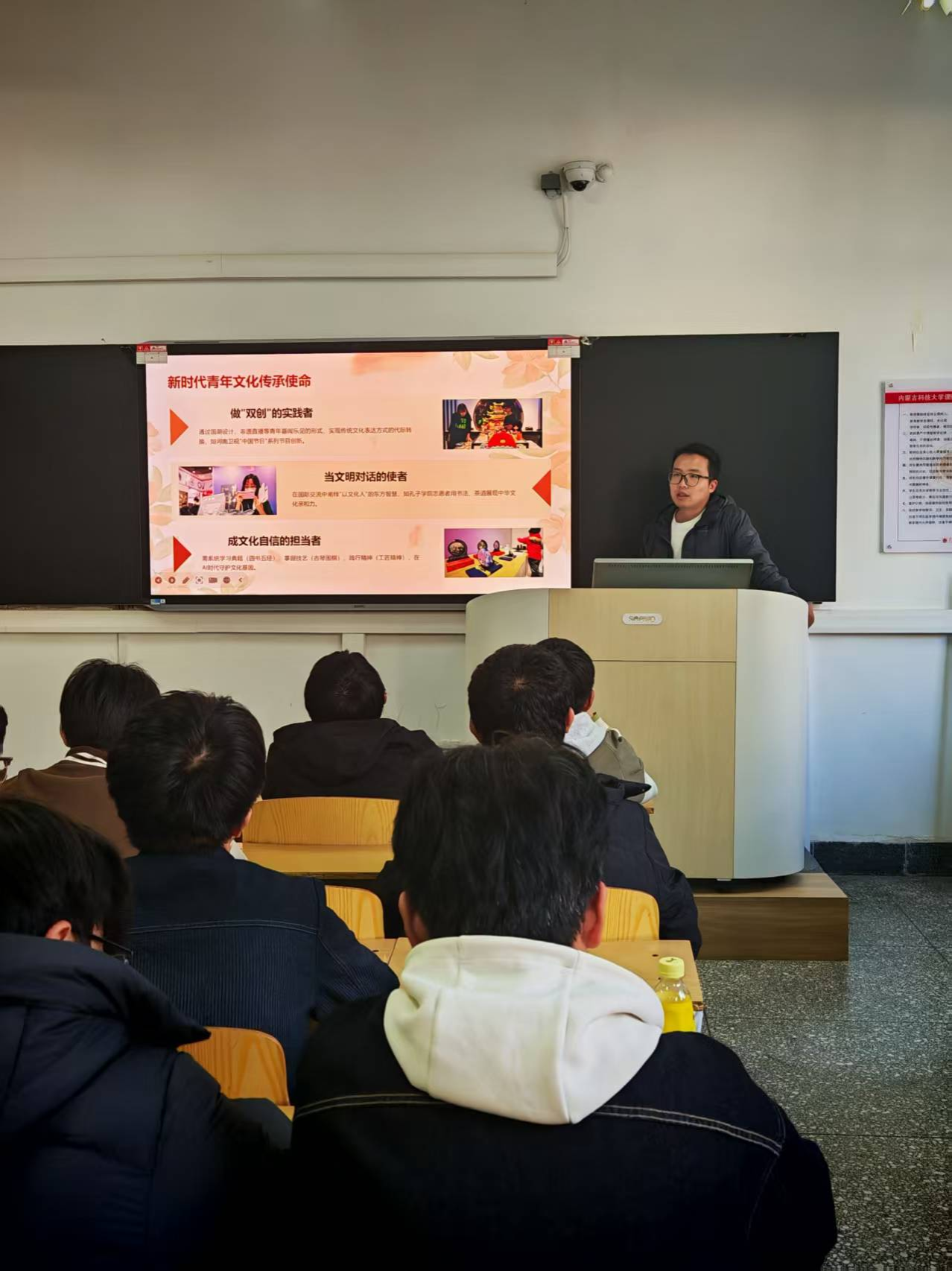 为深入学习贯彻习近平文化思想,贯彻落实好《习近平与大学生朋友们》的学习宣传工作,组织动员团员青年加深对中华优秀传统文化的传承发展,引导团员青年深刻理解“两个结合”的重大意义。2025年11月15日,智采25-1班团支部与智采25-2班团支部联合开展“共话五千年,传承根与魂”主题系列团日活动,提高同学们的思想素养,活动通过“实践铸魂”“思想领航”“大爱传薪”三个环节展现新时代青年的精神风貌。